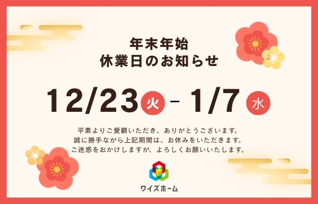 年末年始休業とさせていただきます。